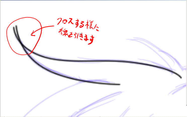 上のイラストの通り、少し線はクロスするような感じで引くといいと思います。