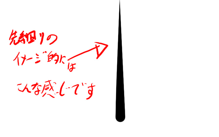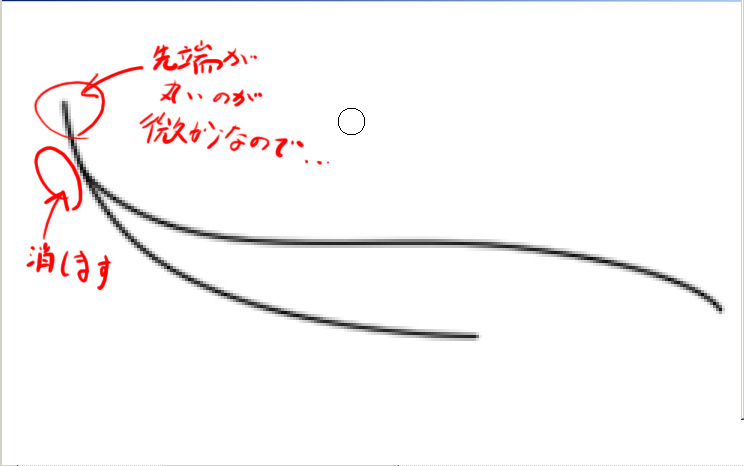 どうしても線の先がこんな感じで丸くなってしまいます。