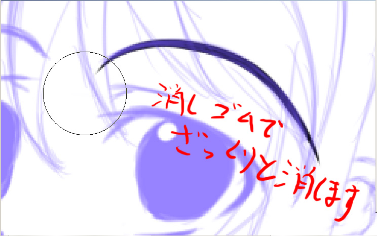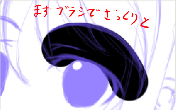 まず、大き目のブラシでざっくりと線をなぞります